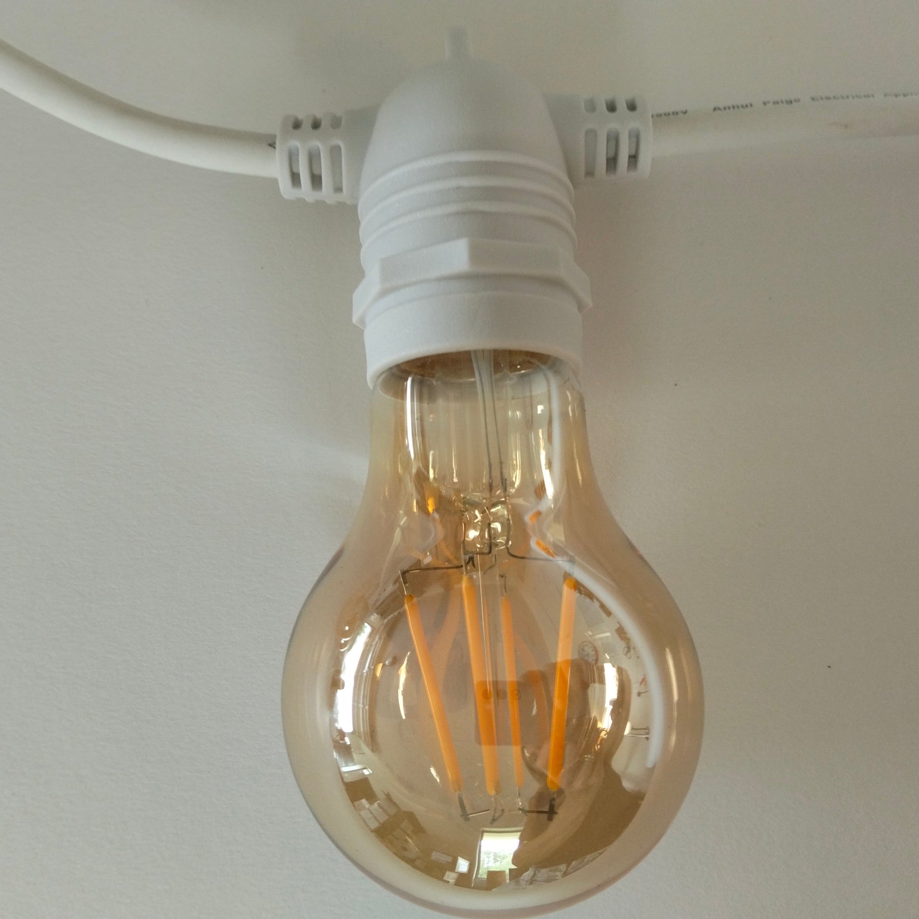 A19 Amber Bulb White Cable | 10m 10 Bulbs | Flush Mount Dimmable Festoon Lights